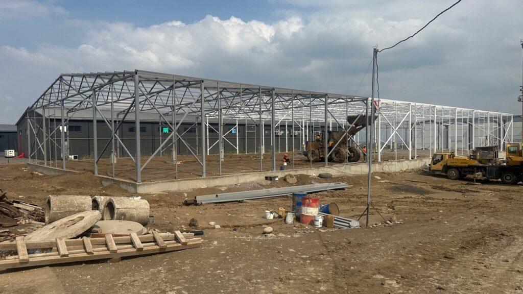 Готовность объекта на текущий момент составляет 43%: завершено возведение каркасных конструкций производственных зданий и многоэтажной бетонной конструкции административного здания.